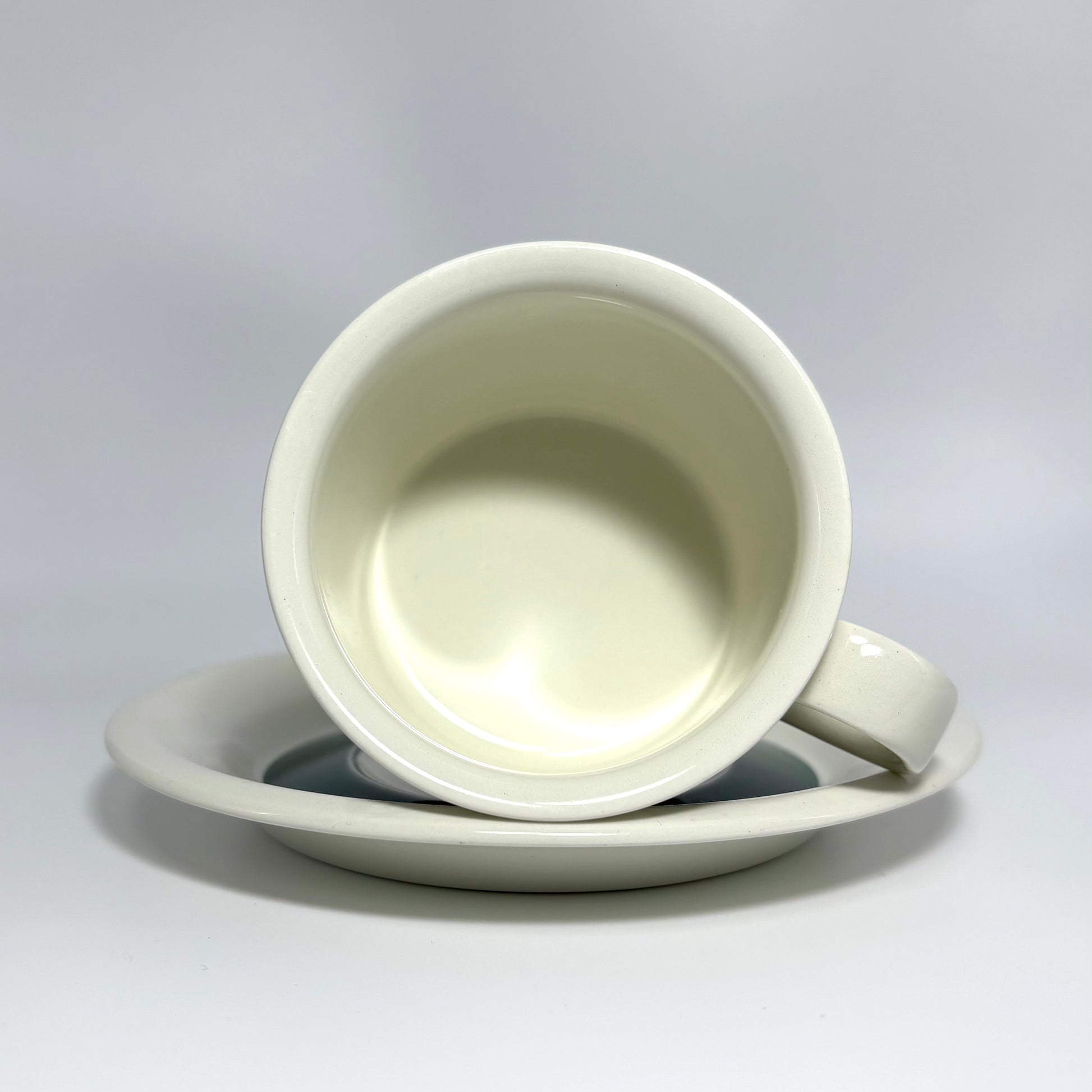 当時の出荷基準および製造技術などにより、釉薬のとび、気泡、黒点、貫入(釉薬のヒビ)などが見られる場合がございます。また、お皿など多くの陶磁器の裏面には、焼成時の支柱跡が3ヶ所見られることがございます。