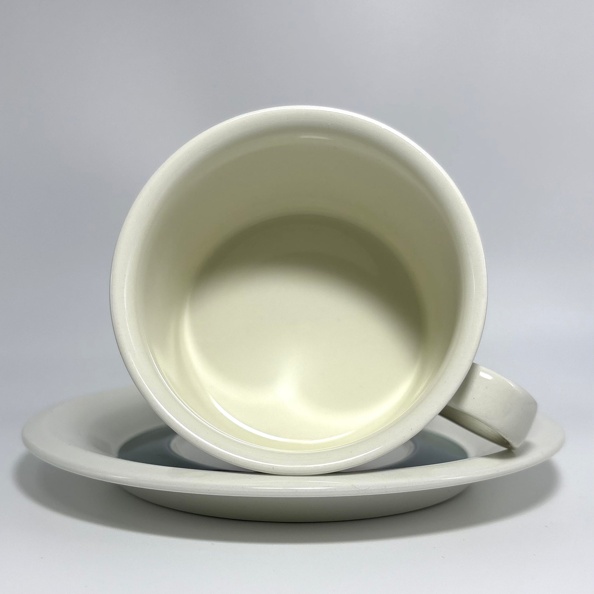 ティーカップは、コーヒーカップに比べてややゆったりとした佇まいが魅力で、Kirsikkaの華やかな絵柄をよりのびやかに楽しめるのも魅力のひとつ。ソーサーの深いグリーンが全体を引き締め、可愛らしさの中にも落ち着きを感じさせるデザインに仕上がっています。