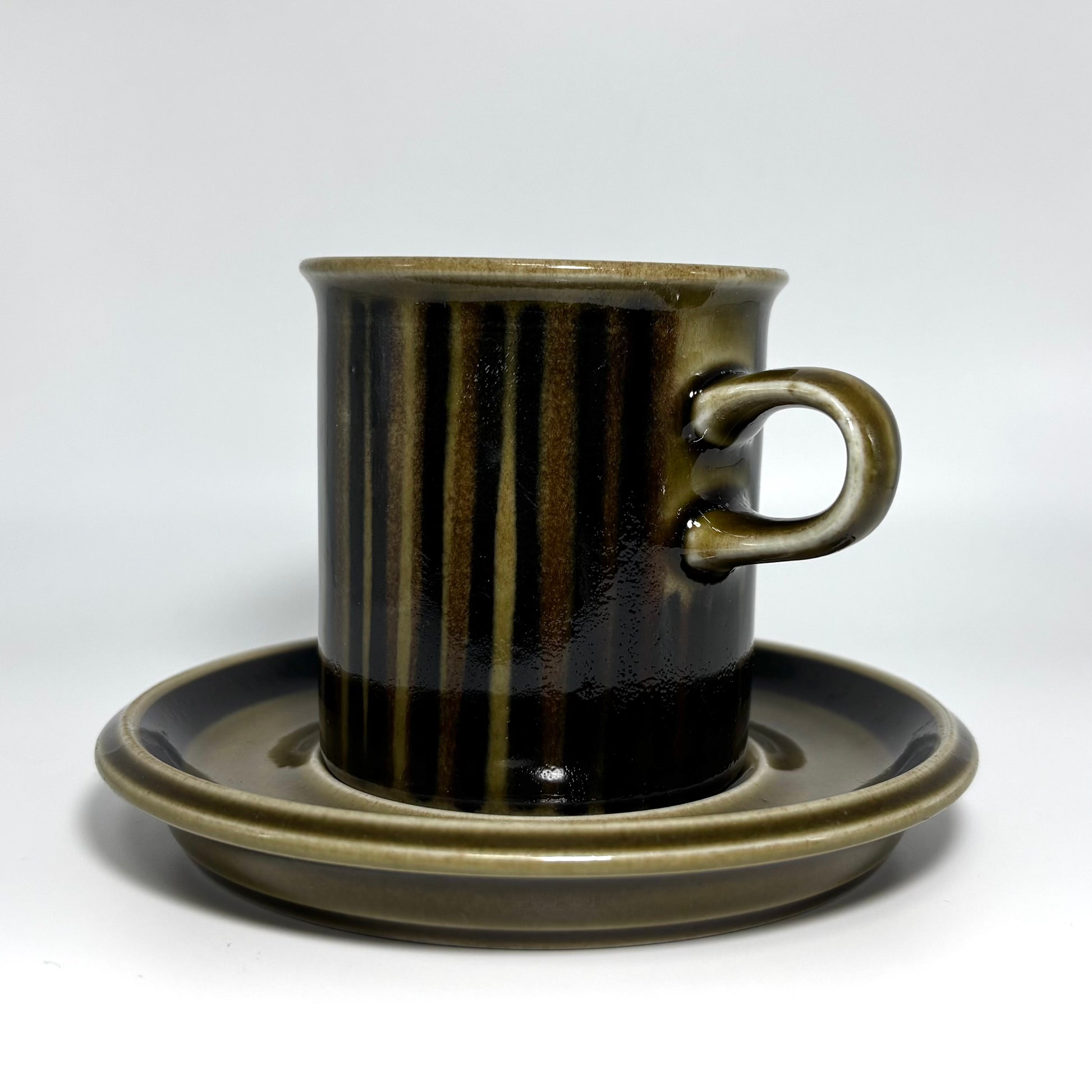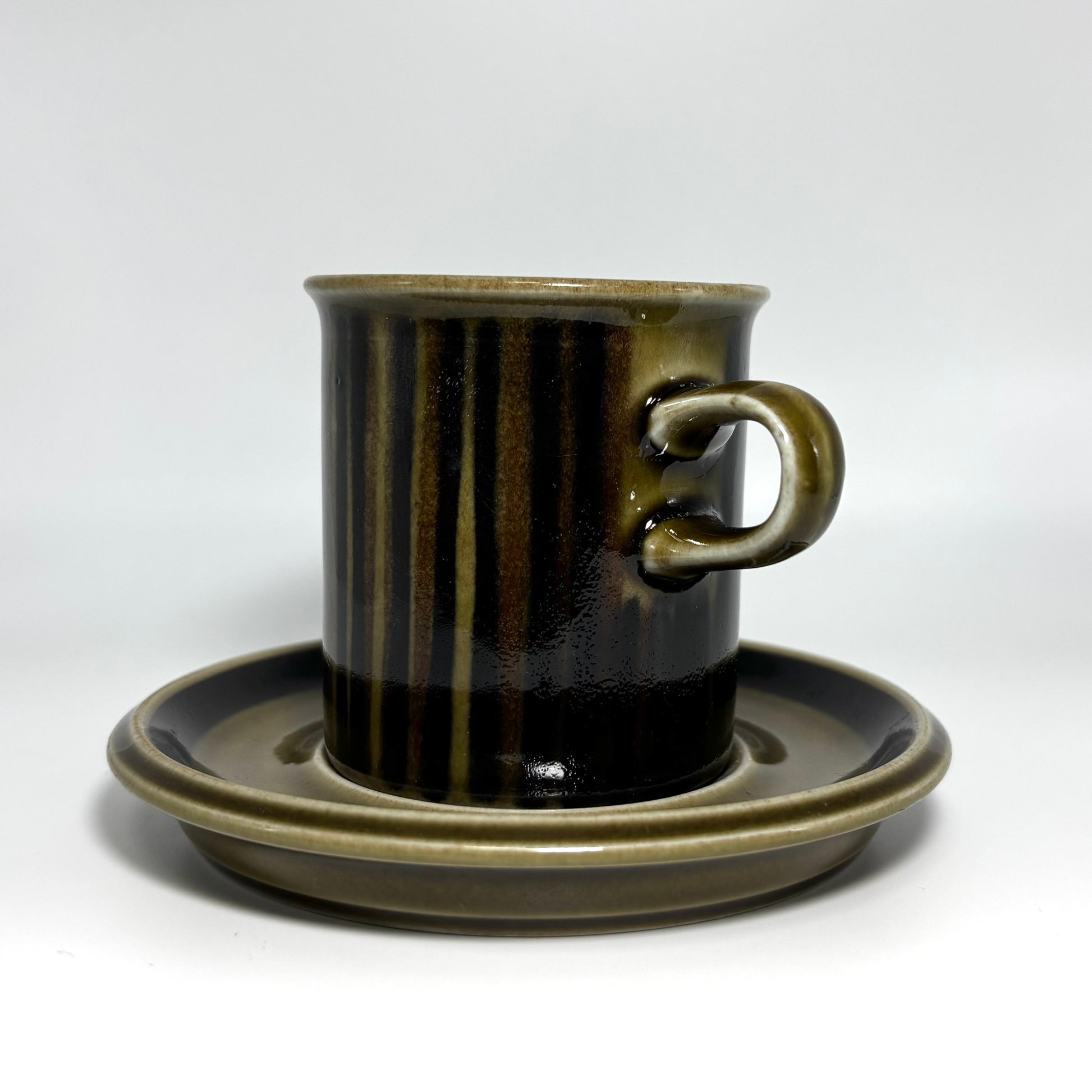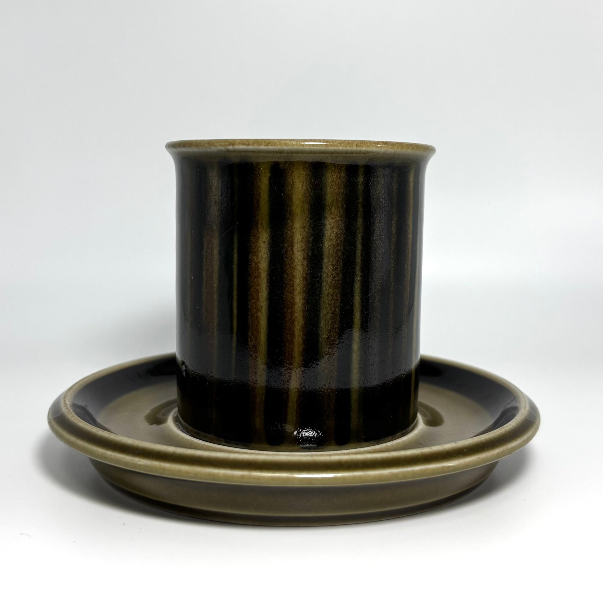 1962年から1976年にかけてARABIA(アラビア)で製造された Kosmos(コスモス) は、深みのあるブラウンのハンドペイントと、落ち着いたストーンウェアの質感が魅力の人気シリーズです。素朴さの中に北欧らしい洗練があり、長く愛され続けているヴィンテージとして高い人気を誇ります。