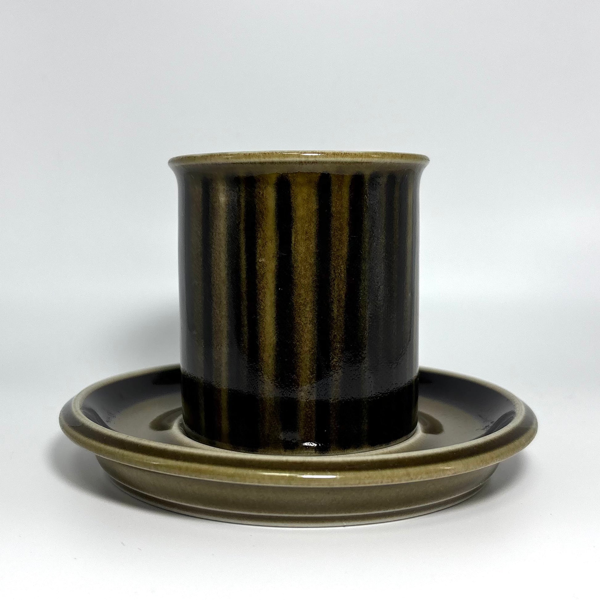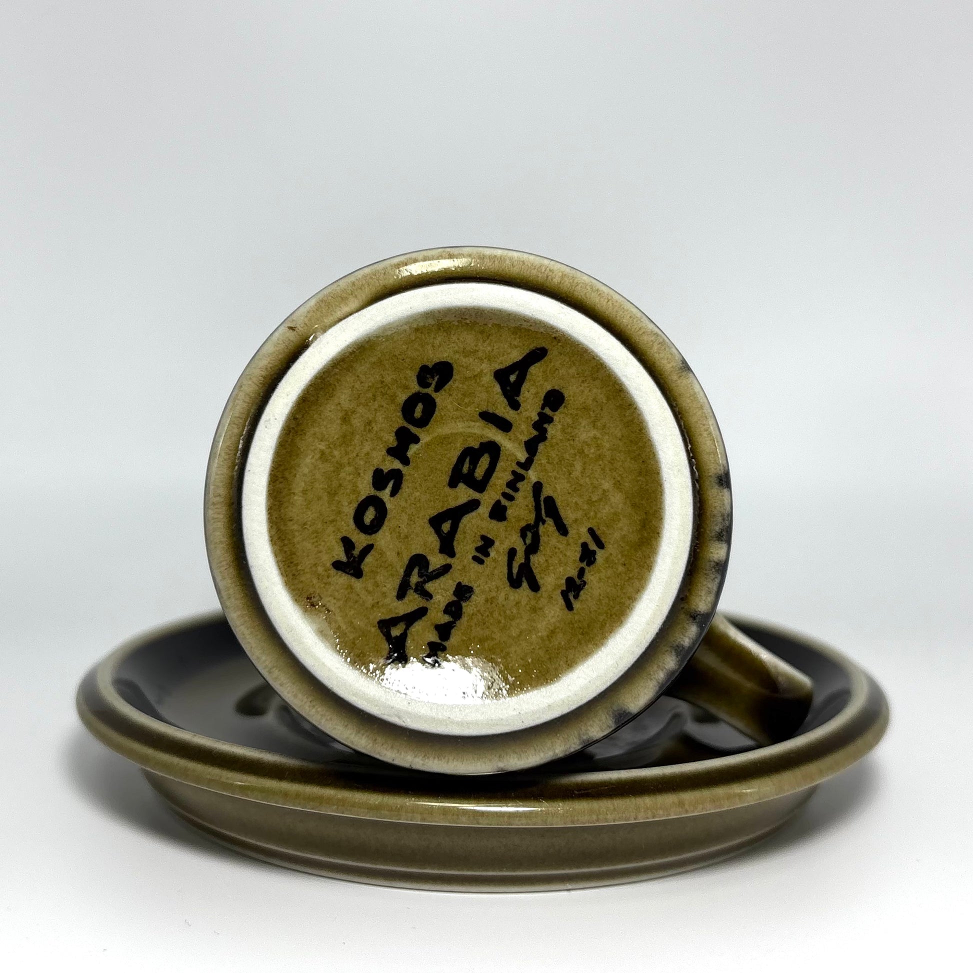 1962年から1976年にかけてARABIA(アラビア)で製造された Kosmos(コスモス) は、深みのあるブラウンのハンドペイントと、落ち着いたストーンウェアの質感が魅力の人気シリーズです。素朴さの中に北欧らしい洗練があり、長く愛され続けているヴィンテージとして高い人気を誇ります。