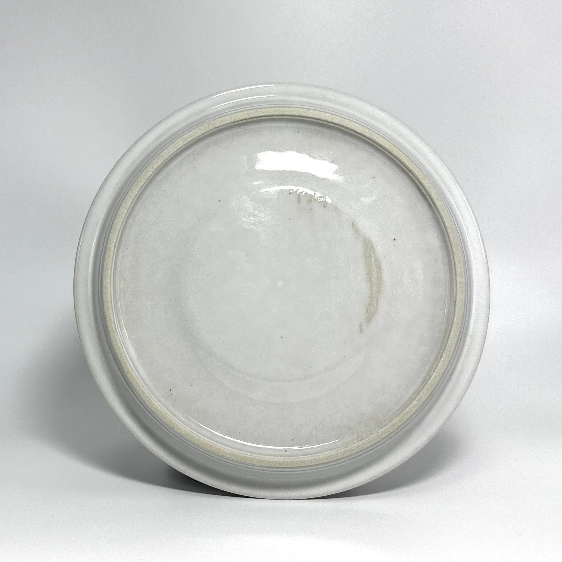 当時の出荷基準および製造技術などにより、釉薬のとび、気泡、黒点、貫入(釉薬のヒビ)などが見られる場合がございます。また、お皿など多くの陶磁器の裏面には、焼成時の支柱跡が3ヶ所見られることがございます。